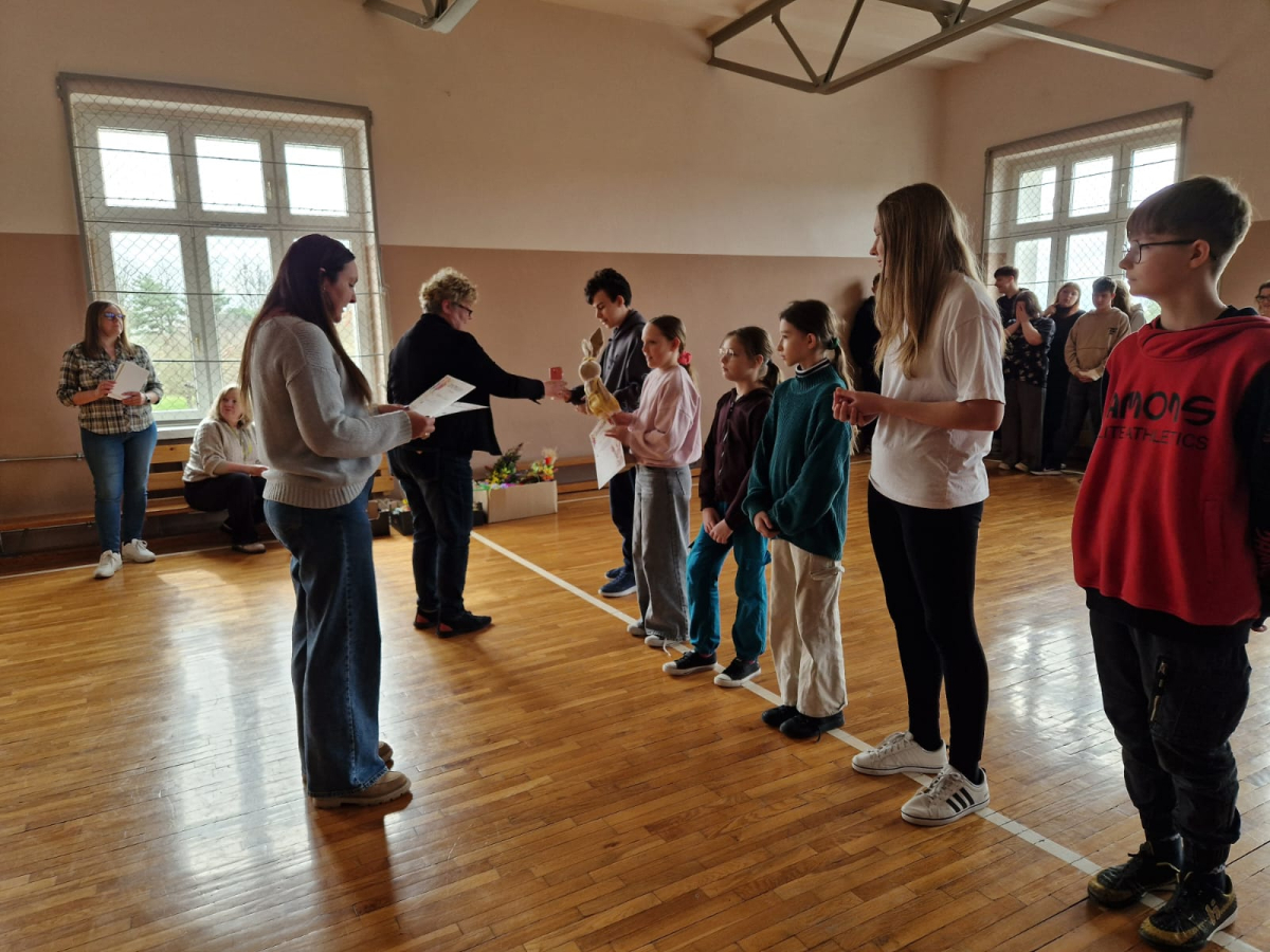 Podczas apelu szkolnego, odbyło się wręczenie zasłużonych dyplomów i nagród. Był to moment pełen dumy i radości, w którym cała społeczność szkolna mogła nagrodzić brawami naszych młodych artystów.