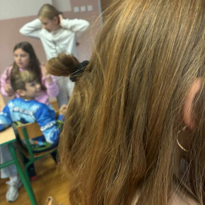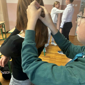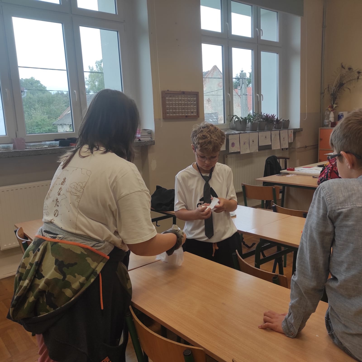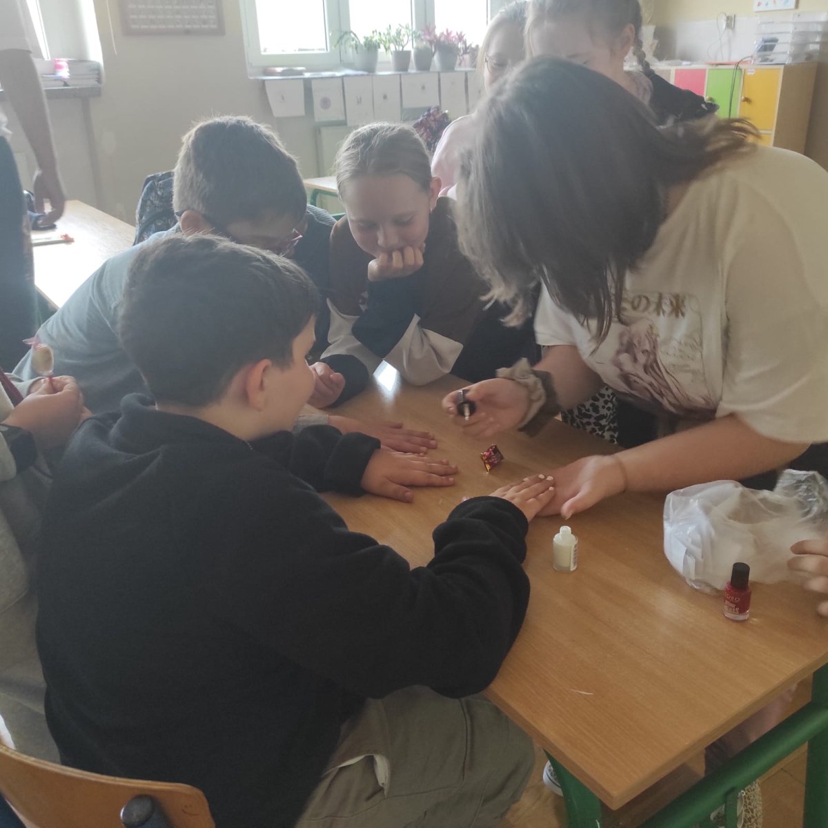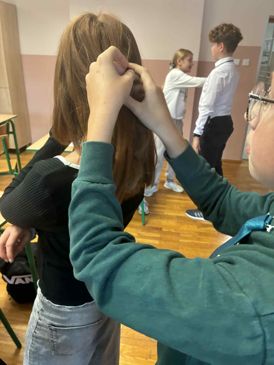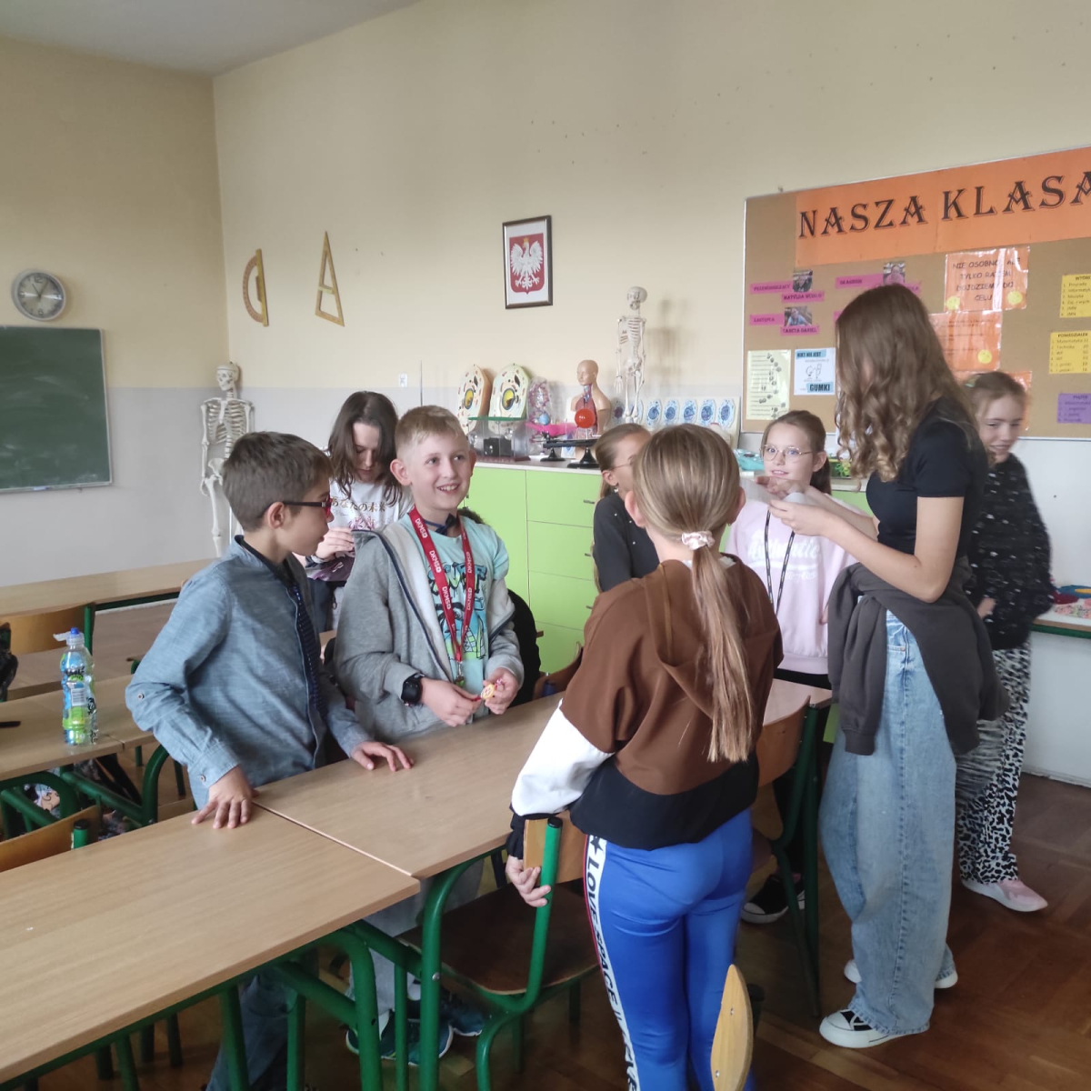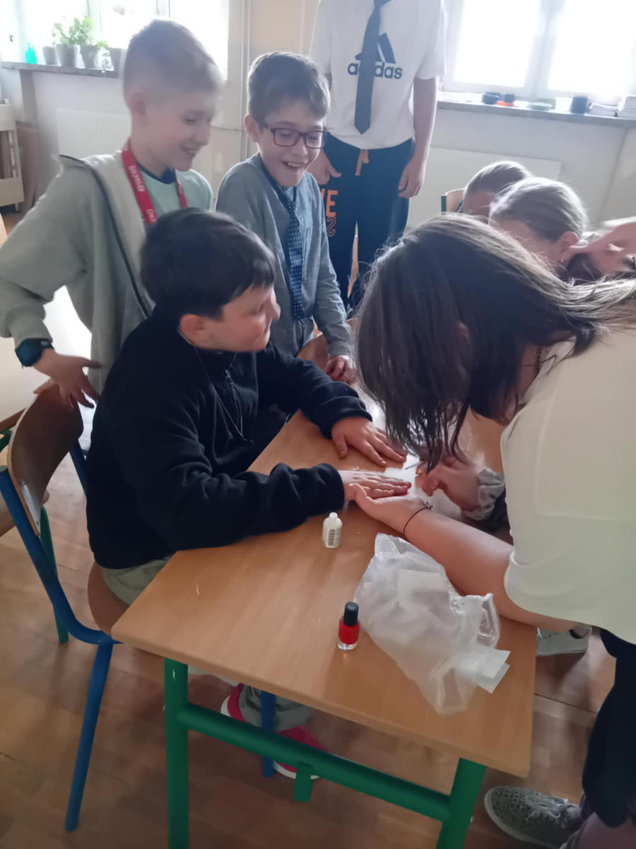 Oprócz słodkiego poczęstunku, dziewczyny przygotowały super zadania – chodziły po klasach i angażowały chłopaków w zabawne wyzwania! Było mnóstwo śmiechu, pozytywnej energii i rywalizacji. Dziękujemy chłopakom za udział i fajną zabawę.