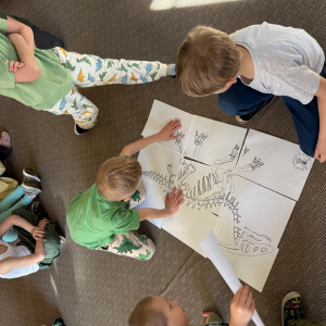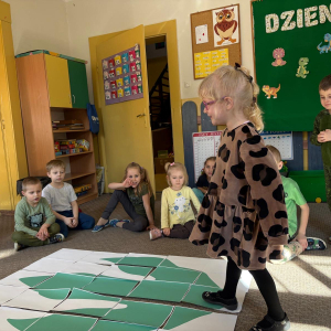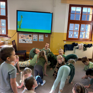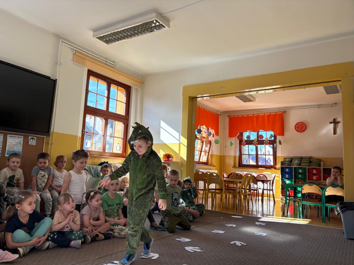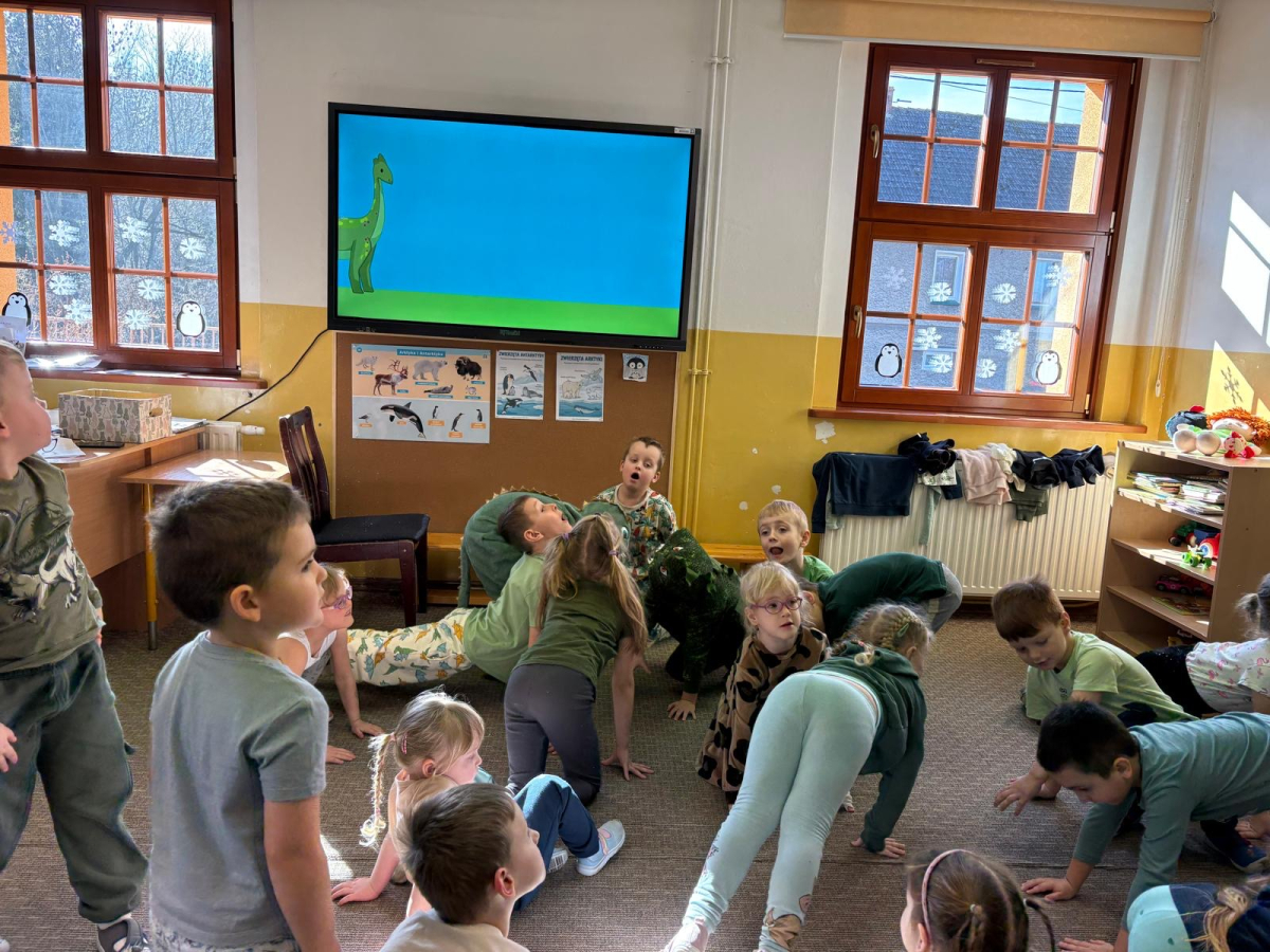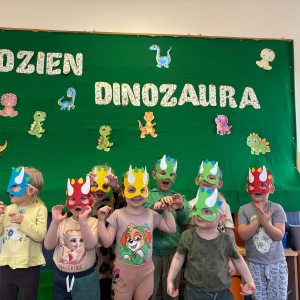 26 lutego to dzień poświęcony dinozaurom – obchodzony jest wtedy Dzień Dinozaura. Przedszkolaki miały okazję przenieść się w prehistoryczny i tajemniczy świat dzięki oglądaniu kolekcji książek o dinozaurach. Pomimo, iż były to bardzo „straszliwe gady” to zabawa z nimi była wyśmienita. Dzieci tego dnia poznały wybrane gatunki tych zwierząt, dowiedziały się skąd brały się małe dinozaury, czym się żywiły oraz z jakiego powodu wyginęły. Przedszkolaki słuchały, oglądały, rozmawiały i dzieliły się swoją wiedzą na temat dinozaurów. W trakcie zabaw ruchowych chętnie inscenizowały ruchem sposób poruszania się tych stworów oraz naśladowały ich przeraźliwe odgłosy. Przedszkolaki próbowały także swoich sił w zadaniach związanych z układaniem elementów ogromnej łapy oraz szkieletu tyranozaura, a także wykonały przepiękne prace plastyczne związane z dinozaurami. Dinozaury królowały też w trakcie zabaw swobodnych. To był wspaniale spędzony czas!