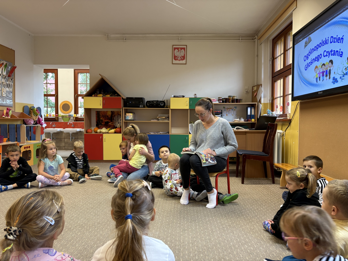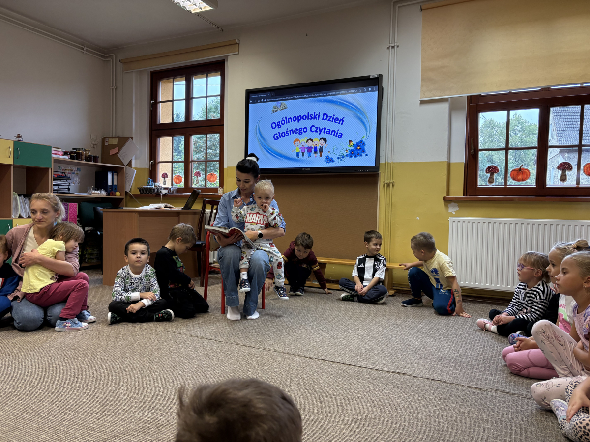 Z okazji Ogólnopolskiego Dnia Głośnego Czytania nasze przedszkole odwiedzili rodzice oraz nauczyciele ze szkoły, którzy z ogromnym zaangażowaniem czytali dzieciom ulubione bajki i opowiadania. Spotkanie pełne było radości, uśmiechów i ciekawych historii, które rozbudziły w dzieciach wyobraźnię i zachęciły do sięgania po książki.