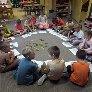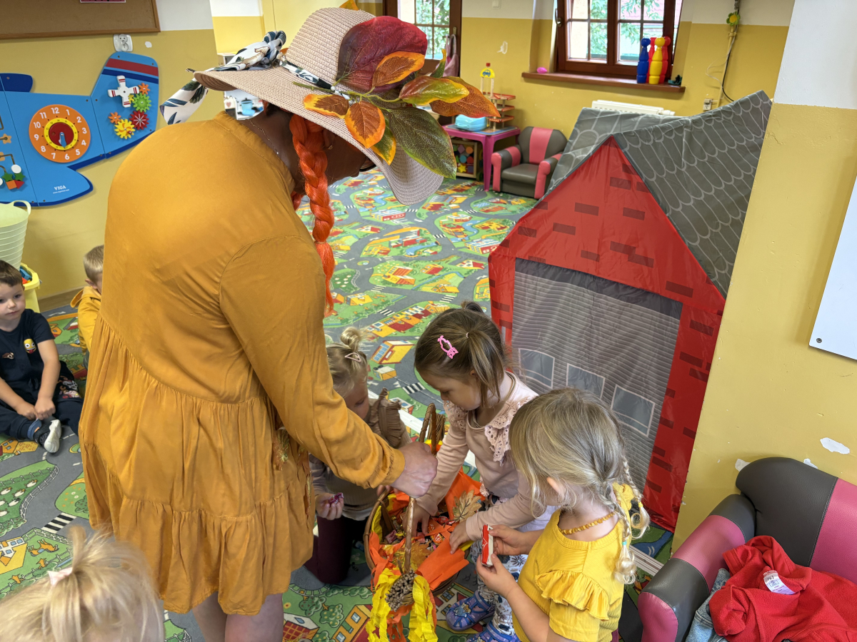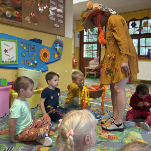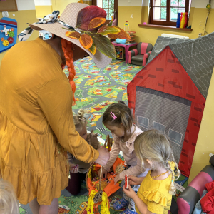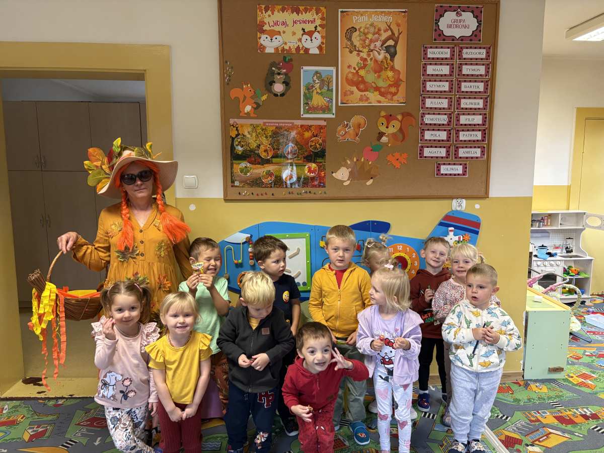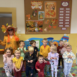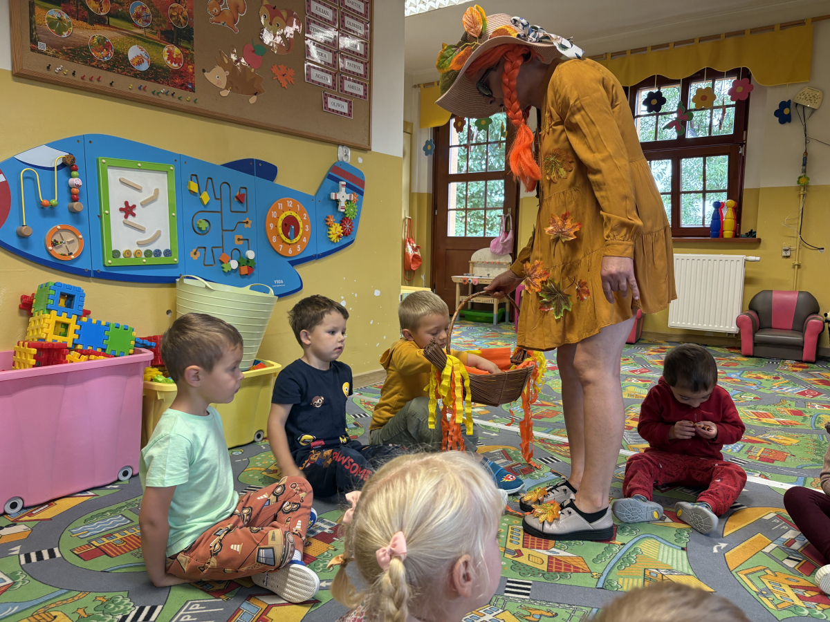 Pierwszy dzień jesieni świętowaliśmy w radosnej atmosferze. Dzieci przygotowały piękne prace plastyczne, brały udział w wesołych zabawach ruchowych, a także śpiewały jesienne piosenki. Największą niespodzianką była wizyta Pani Jesieni, która obdarowała wszystkie dzieci cukierkami oraz wręczyła im pamiątkowe dyplomy. To był pełen uśmiechu i kolorów dzień!