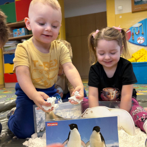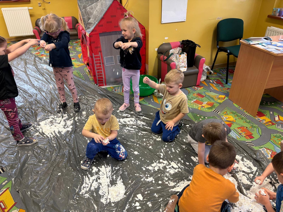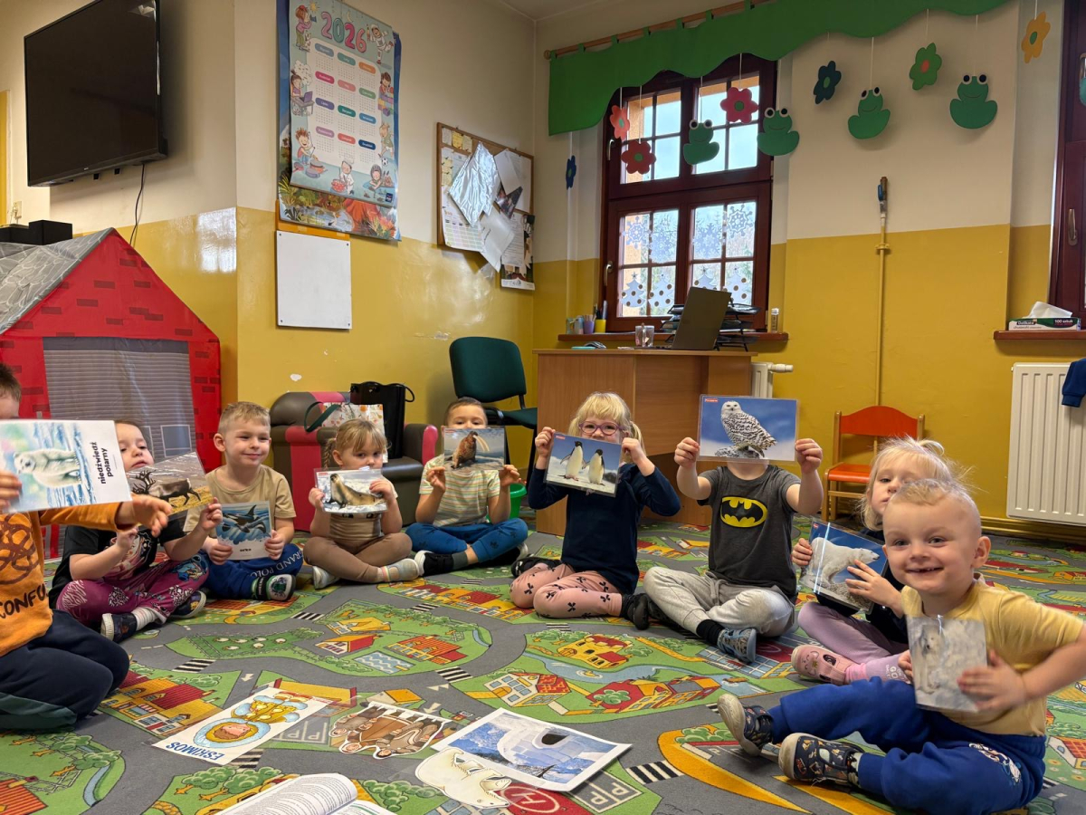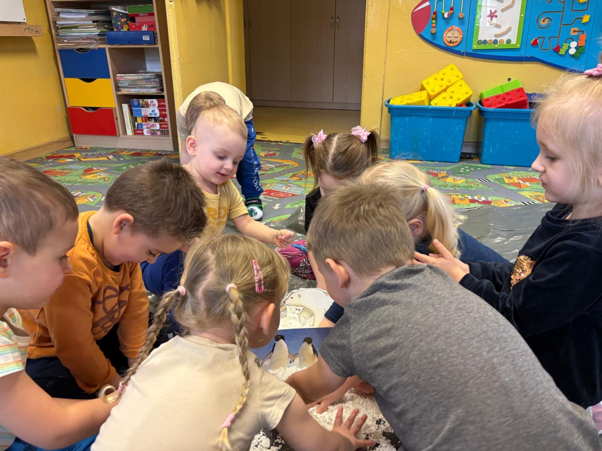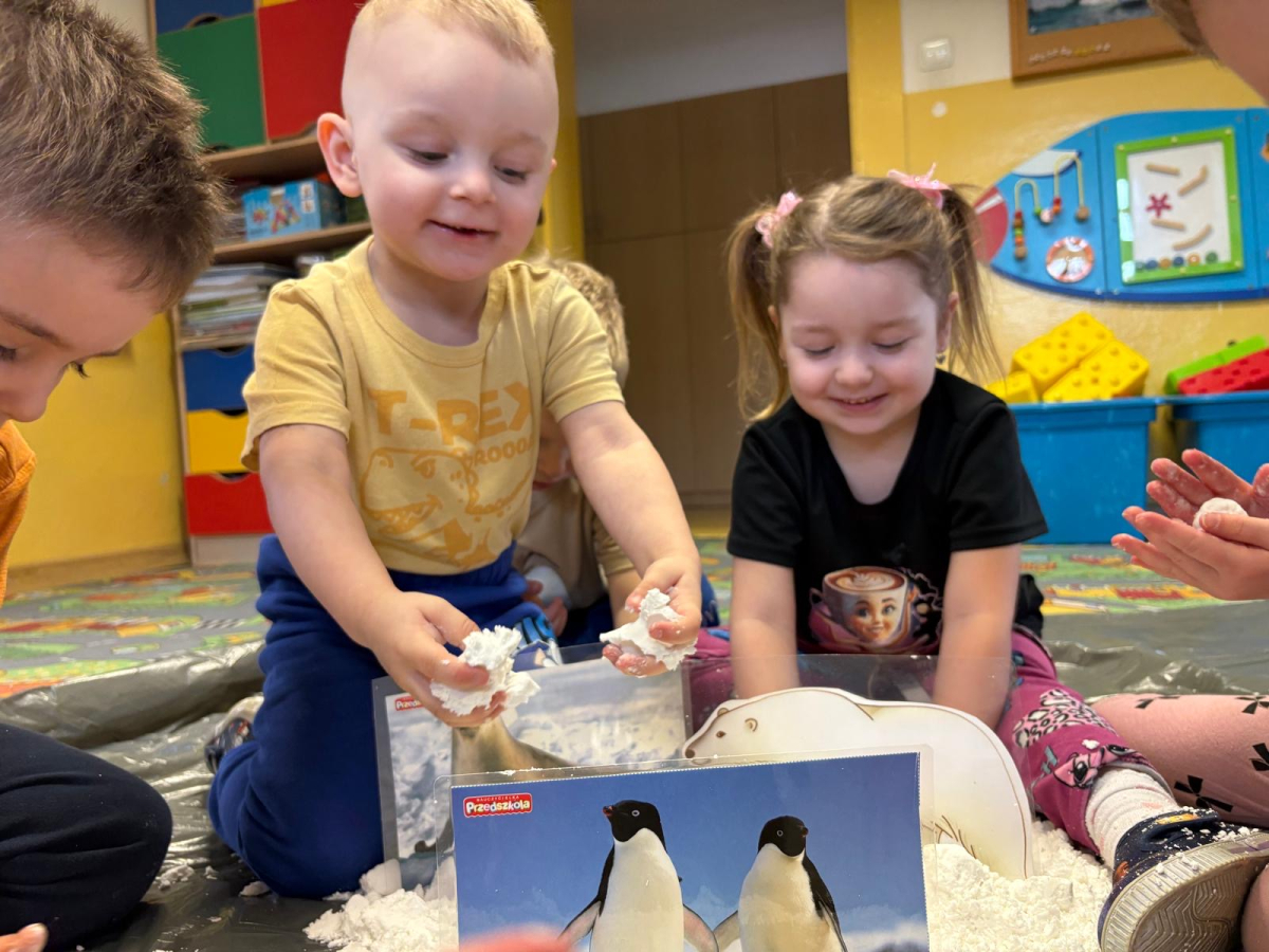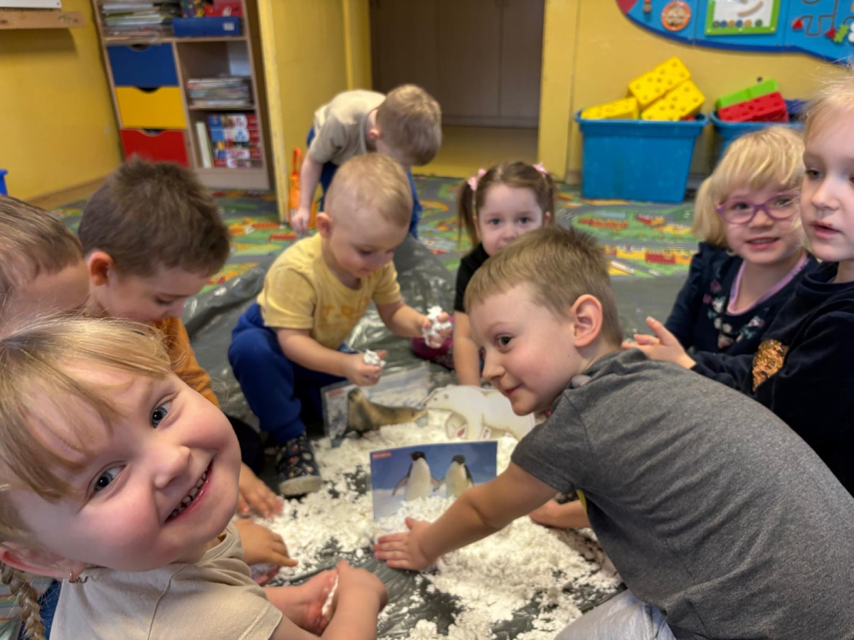 W grupie „Biedronki” odbył się wyjątkowy tydzień poświęcony biegunom naszej planety. Dzieci dowiedziały się, gdzie na mapie znajdują się bieguny, jak wyglądają te niezwykłe miejsca oraz jakie panują tam warunki. Poznały również zwierzęta i ludzi, którzy żyją w tych mroźnych rejonach świata. Podczas zajęć nie zabrakło ciekawych doświadczeń i zabaw. Przedszkolaki stworzyły także sztuczny śnieg, który przeniósł nas w wyobraźni aż na Grenlandię. Dzięki temu dzieci mogły jeszcze lepiej poczuć klimat tych zimowych krain. Był to tydzień pełen odkrywania, ciekawostek i kreatywnych działań, który rozbudził w dzieciach ciekawość świata oraz chęć poznawania odległych zakątków naszej planety.