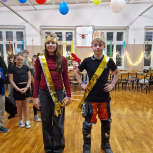 Kulminacyjnym punktem wieczoru były wybory pary królewskiej. Z dumą ogłaszamy, że tytuł Królowej Balu zdobyła Amelka Pietrzak (kl. V), a Królem Balu został Tomasz Misa (kl. 7lVII). Serdecznie gratulujemy!