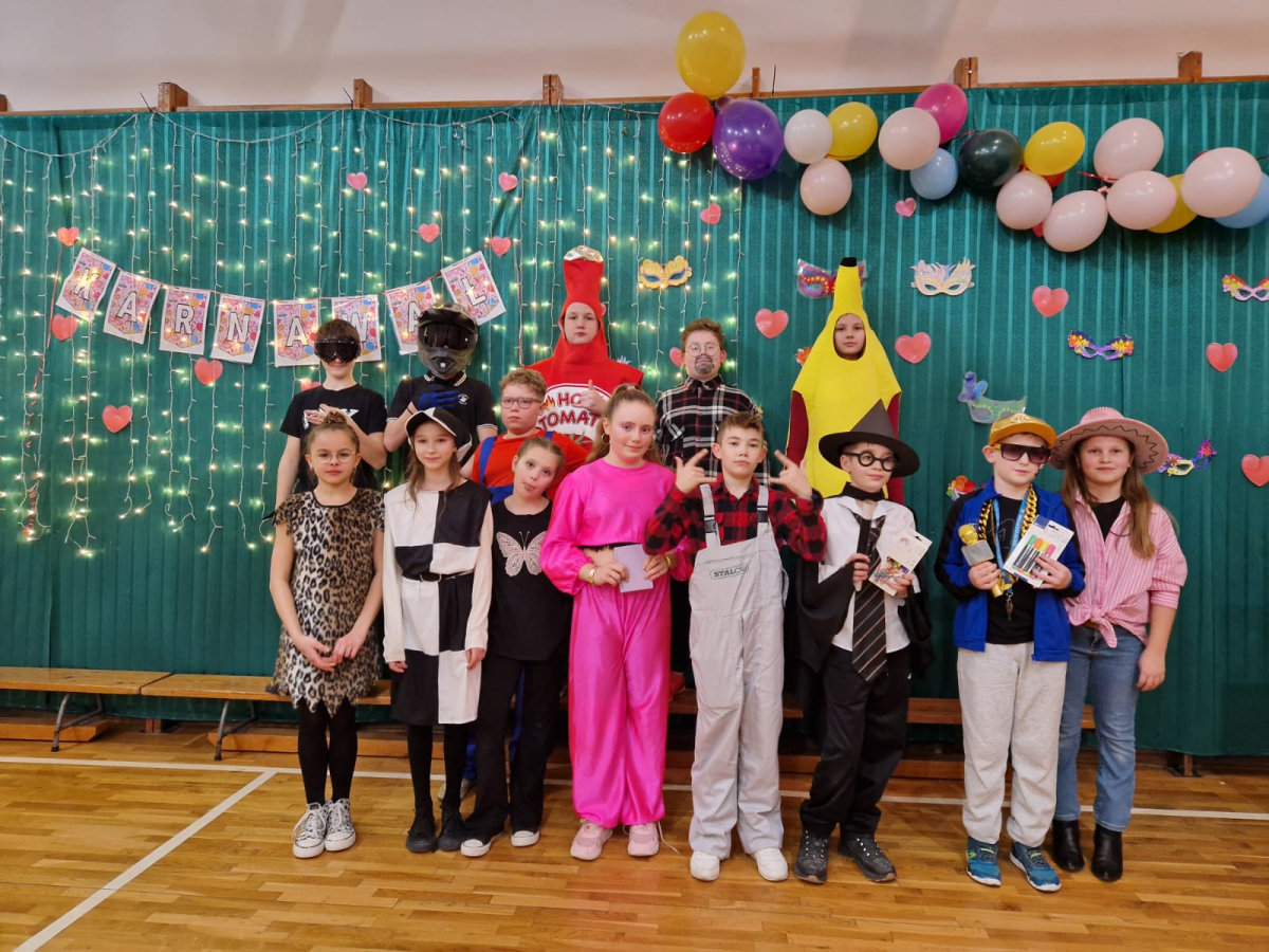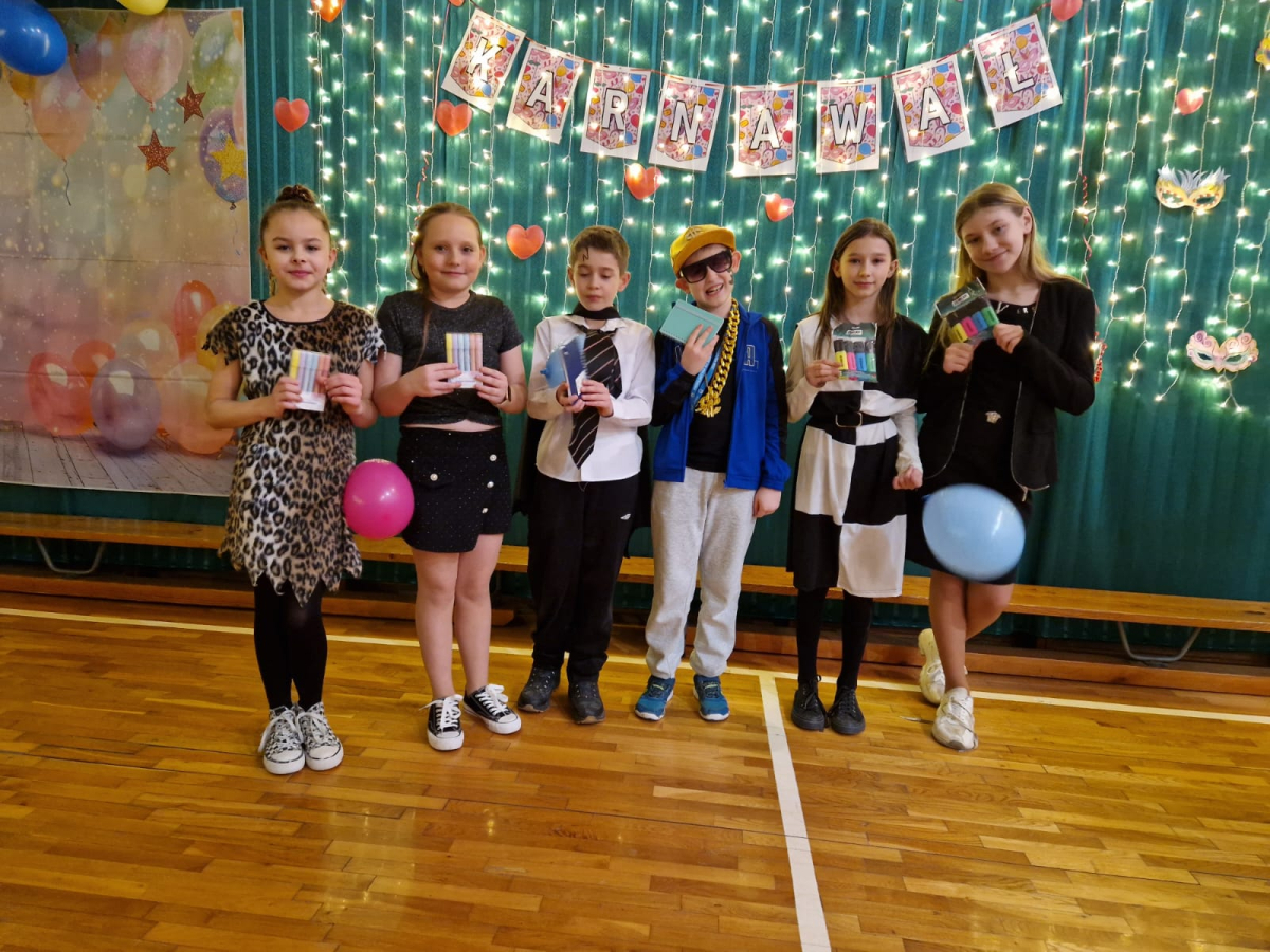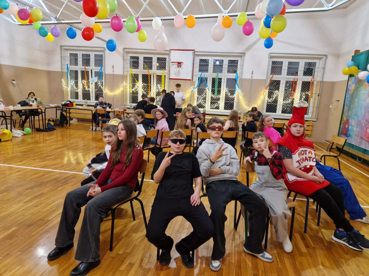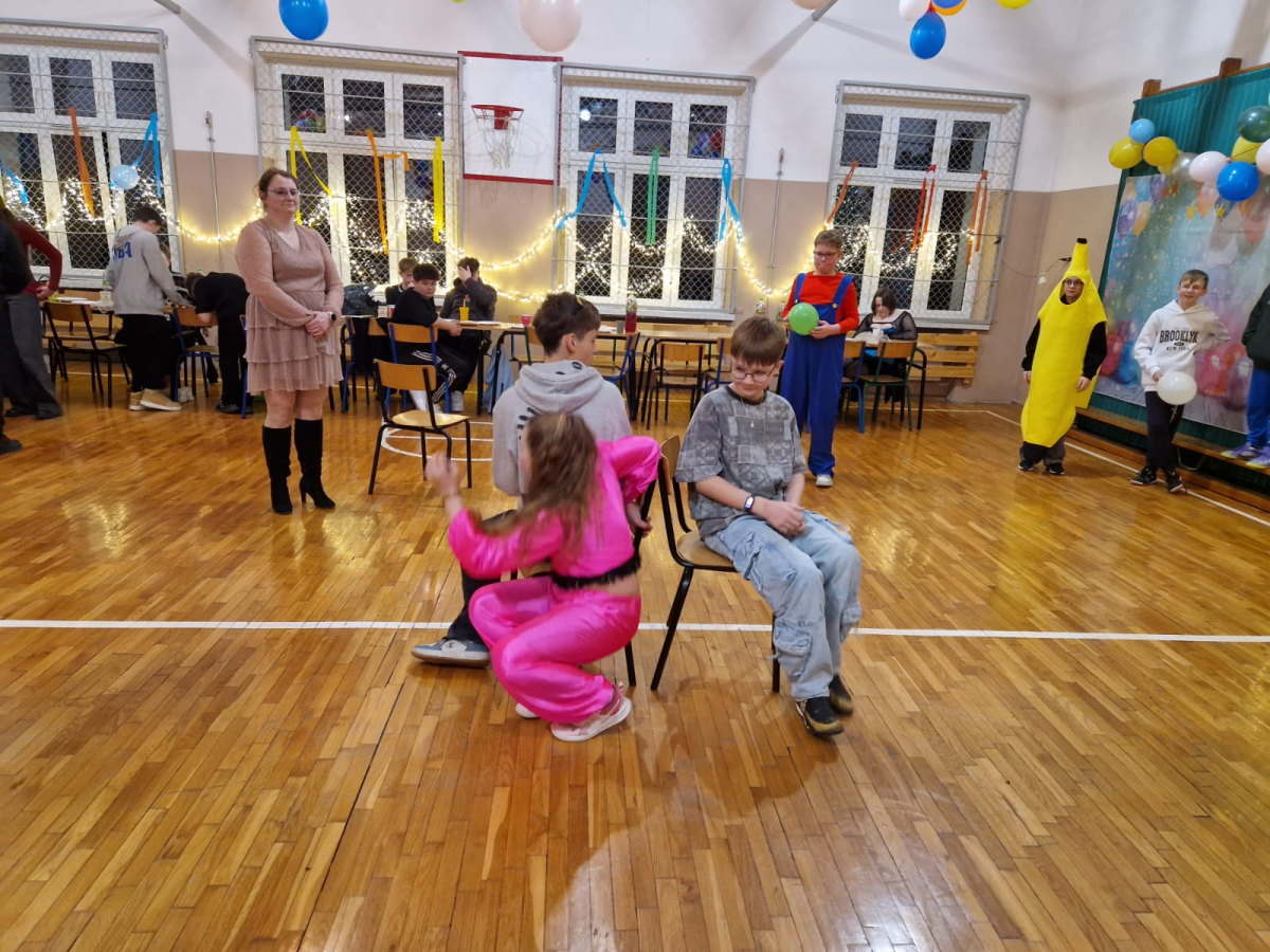 Głównymi architektami tego wydarzenia byli uczniowie klasy VII, którzy pod czujnym okiem swojej wychowawczyni zadbali o fantastyczną atmosferę i bogaty program atrakcji. Kreatywność organizatorów nie znała granic– wzięliśmy udział w emocjonujących konkurencjach, takich jak widowiskowy taniec z balonem oraz pełen napięcia taniec z krzesełkiem. Wybrano również najciekawszy strój karnawałowy, co było nie lada wyzwaniem przy tak pomysłowych przebraniach!