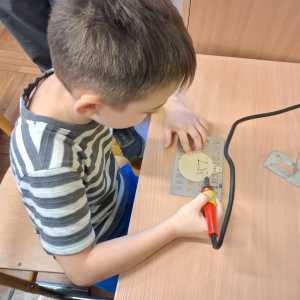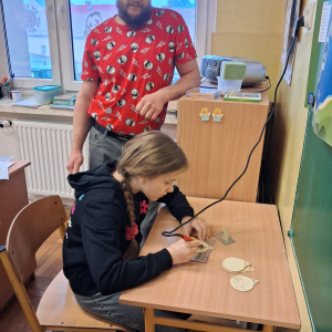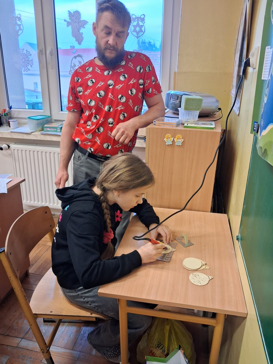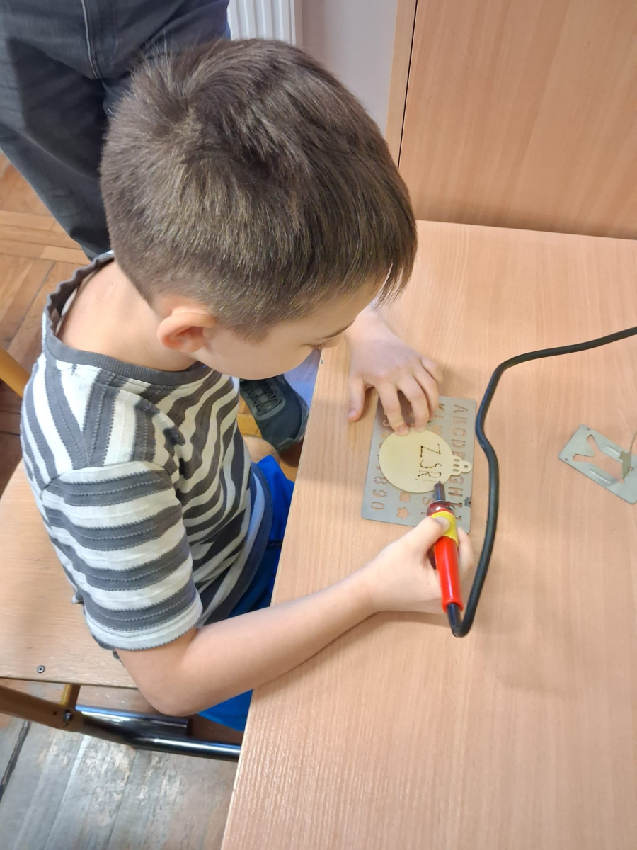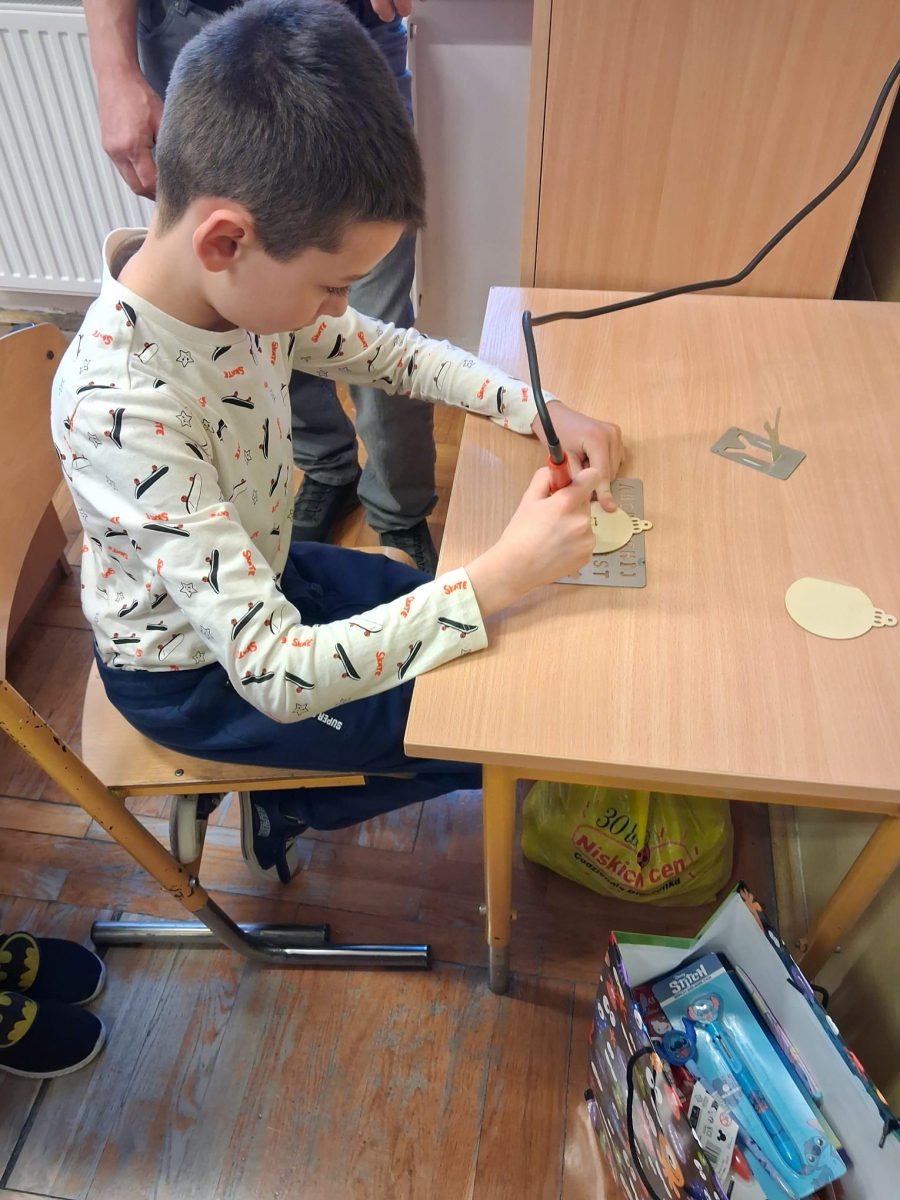 15 grudnia uczniowie klasy III wzięli udział w warsztatach plastycznych zorganizowanych w naszej klasie z udziałem pana Adriana Sachy, taty Weroniki. Dzieci ozdabiały swoje bombki wypalarką do drewna. To dla nich zupełnie nowa technika. Jest to technika raczej trudna, ale bardzo spodobała się dzieciom. Dziękujemy tacie Weroniki za udostępnienie nam sprzętu i opiekę nad dziećmi w trakcie wykonywania ozdób świątecznych.